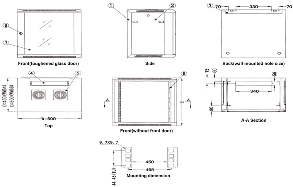 •Estándar: Cumplir con la norma ANS/EIA RS-310-D, IEC297-2, DIN41497 PART1,DIN41494 Part 7, GB/T3047.2-92;